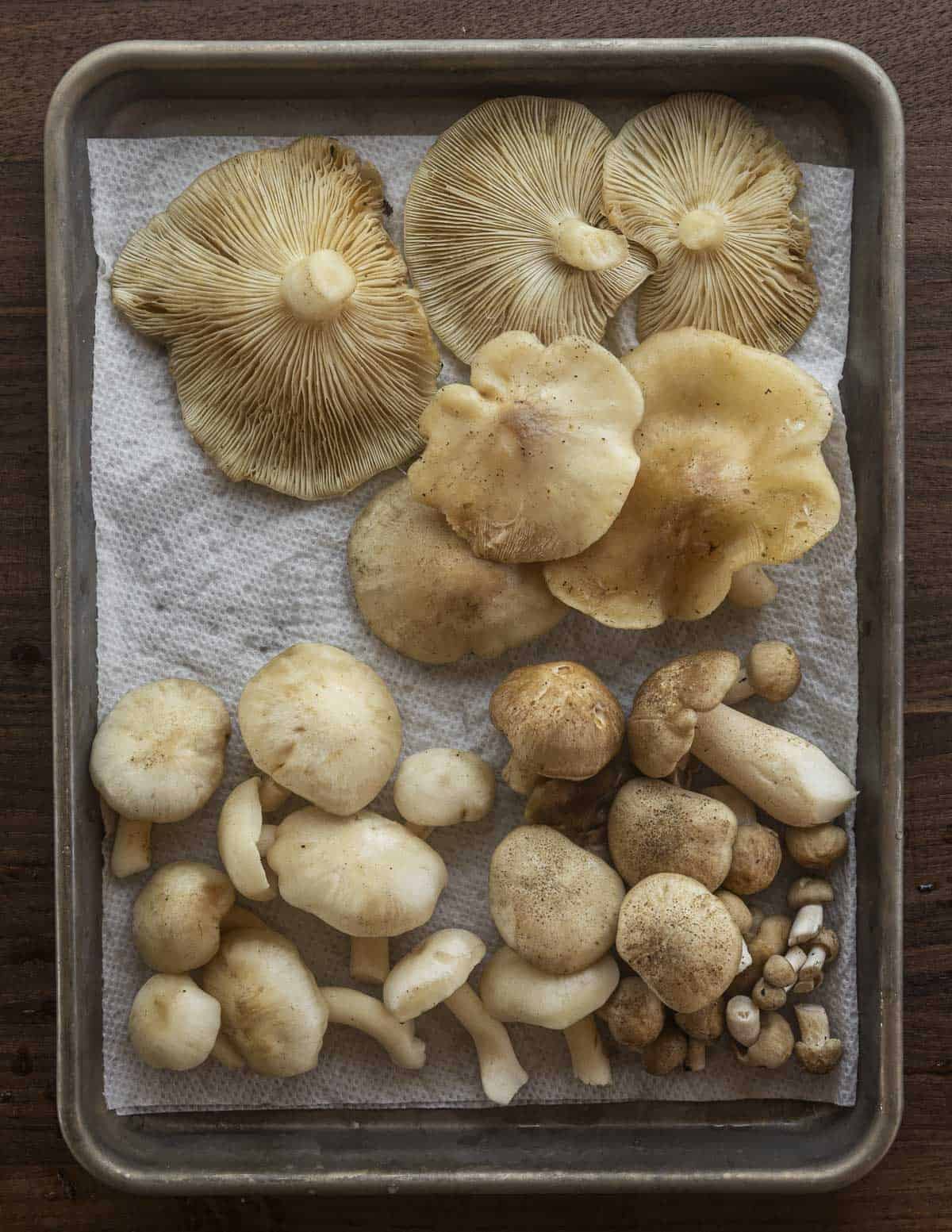 Like most mushrooms the first thing I do is I give them a swish in cool water or scrub lightly with a small brush if needed, leaving them to dry on paper towels.